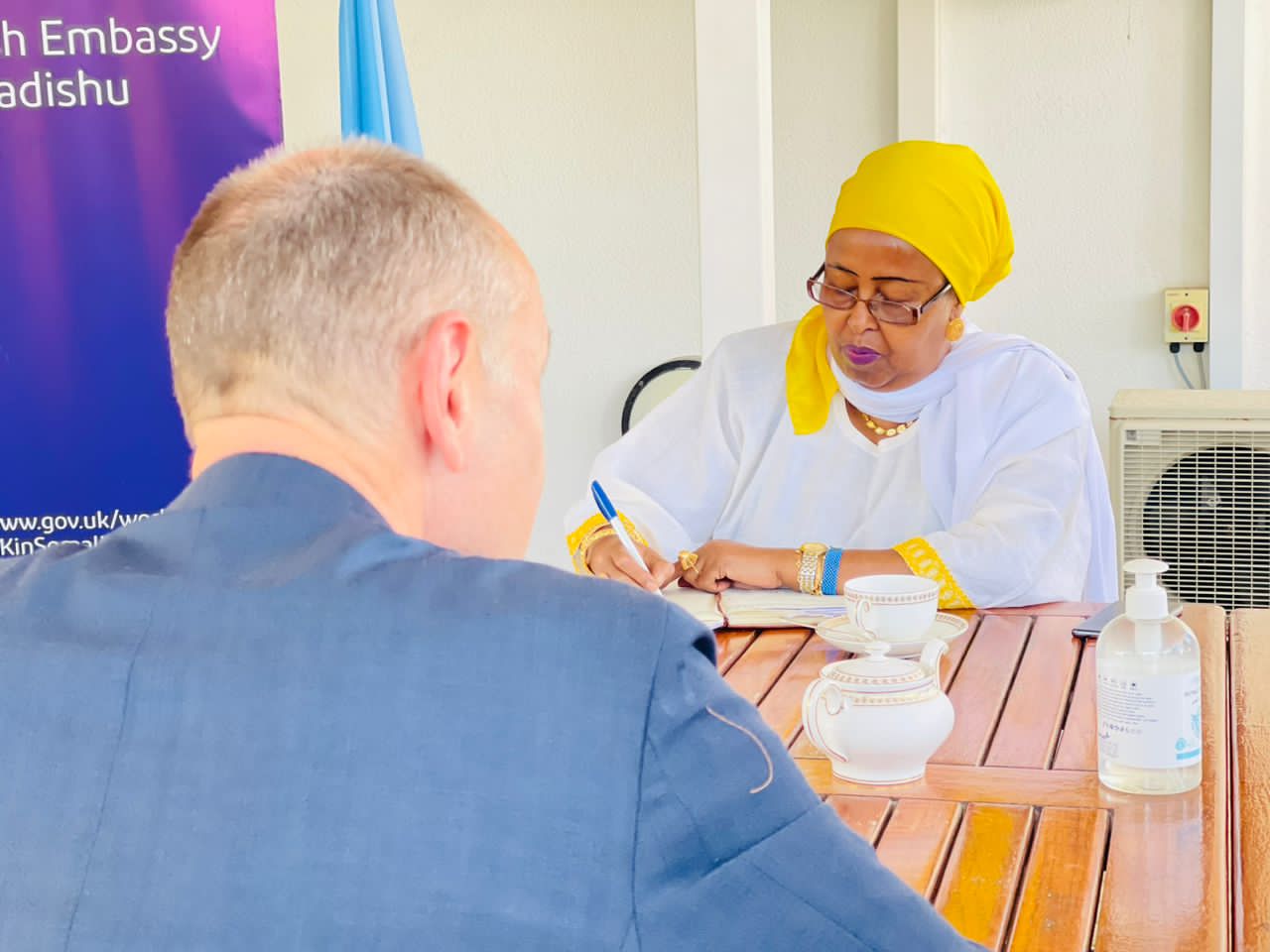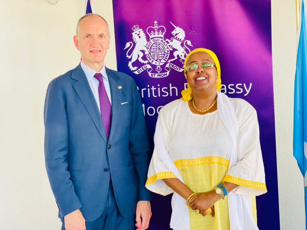 Wasiirka Wasaaradda Haweenka iyo Horumarinta Xuquuqda Aadanaha Mudan Khadija Mohamed Diriye ayaa maanta kulan kala war-qaadasho ah oo la xiriirta howlaha safaaradda Ingiriiska ee Soomaaliya iyo Wasaaradda Haweenka iyo Horumarinta Xuquuqda Aadanaha la qaadatay Safiirka cusub Amb. Mike Nithavrianakis ee dhawaan Dowladda Ingiriiska u soo magacaawday Soomaaliya.